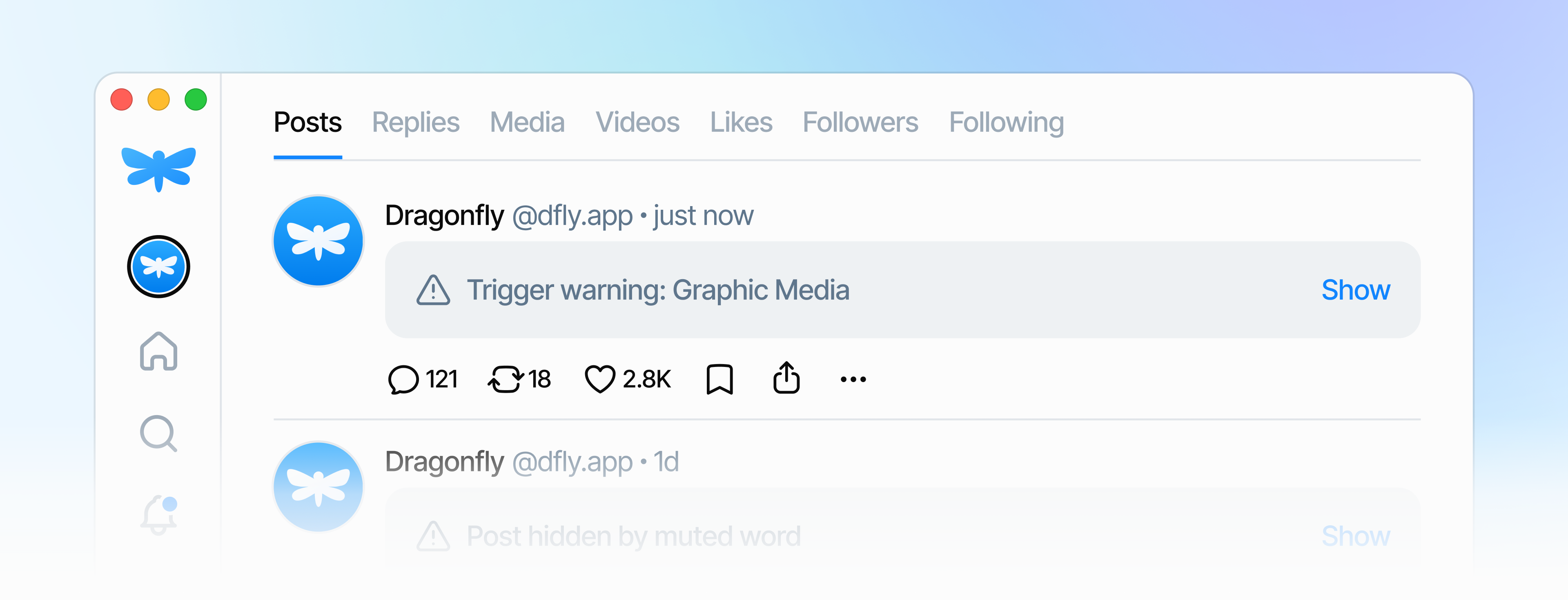 π NSFW content control β Show, hide, or get a trigger warning on NSFW content based on your Bluesky moderation settings.